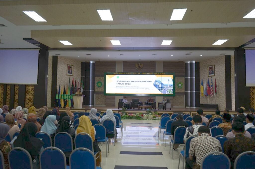 Malang-Masih banyaknya Dosen Tetap (DT) Universitas Islam Negeri Maulana Malik Ibrahim Malang yang belum mengikuti sertifikasi dosen mendorong LPM sebagai penanggungjawab pelaksanaan penjaminan mutu untuk mengadakan sosialisasi pagi ini, Jumat (31/3). Sebanyak 223 DT hadir dalam kegiatan yang dilaksanakan di Aula Rektorat Lantai 5.